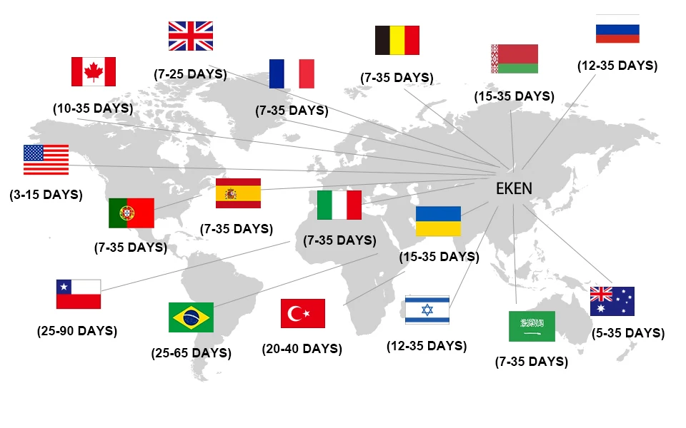 - USA & Canada : 8 - 24 DAYS