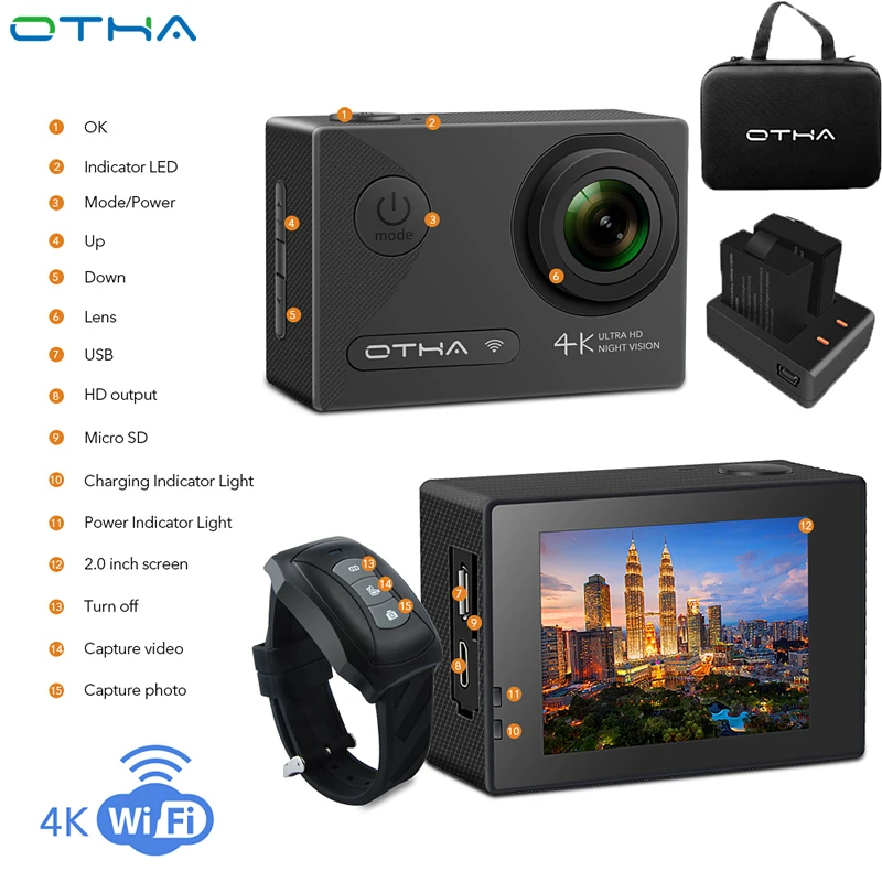 OTHA Action Camera Ultra HD 4K Video Camera Night Version DV Waterproof WiFi 1080P Underwater Sports Camera with Remote Control