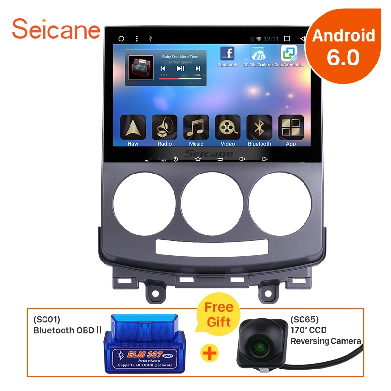 Seicane 9 Inch Android 6.0 HD Car DVD Player GPS Navigation for 2005-2010 Mazda 5 Radio Bluetooth 3G 4G WIFI OBD2 Rear View Camera