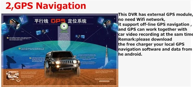 Relaxgo 2017 Upgrade 5" Car DVR GPS Navigation Wifi Android Full HD 1080P Car Camera Dual Lens Parking Rearview Mirror Dash Cam Video Recorder Newest System, Made By High Quality QuadCore Allwinner A33, Highlight TFT Screen ,The Video Quality is More Clear And GPS More Stable Function1,Car Mirror2,Car Video Recorder(Dual Lens)3,GPS Navigation(we will help you install your countrys map)4,Parking Function(With Reverse Image) SpecificationModel : LL021 PlusPixels : 1200Mega Screen Size : 5.0 inchView angle : 140 degree wide angle( front lens)120 degree wide angle (back lens)Video Resolution : 1920*1080P Video Format : AVIFrames Per Second : 30 GPS,Wifi : SupportLanguage : English, Chinese,Portugues,Russian Ect Night Vision: Yes Reverse image: SupportMotion Detection : Support G-SENSOR: Support Cycle Recording: Support Auto ON or OFF : Support Built in : Microphone, Speaker Battery : Polymer batteryCharge Port: 5V WDR : Yes Android: 4.4.2 Card Slot : TF Memory Card Maximum : Up to 32GB . PackageCar Mirror DVRCar ChargerGPS ModuleRear CameraRear Camera Connect CableUSB CableInstruction ( English and Russian language instruction,more convenient ) Important tips about SD cardThe car camera is HD1080P video recording, high requirements on The SD card. In order to guarantee The normal use of The car camera, you need a SD card from The high literacy rate. The C10 high -speed card is it, and you must ensure that The SD card has good quality. If using low quality SD card, car camera may not work properly.Our SD card is rigorously *, c10 - speed with high quality, can ensure the normal operation of the car camera.If you can not make sure that the SD card you buy in other place has good quality, when buying car camera while buying SD card here, which can ensure the normal use of the car camera.