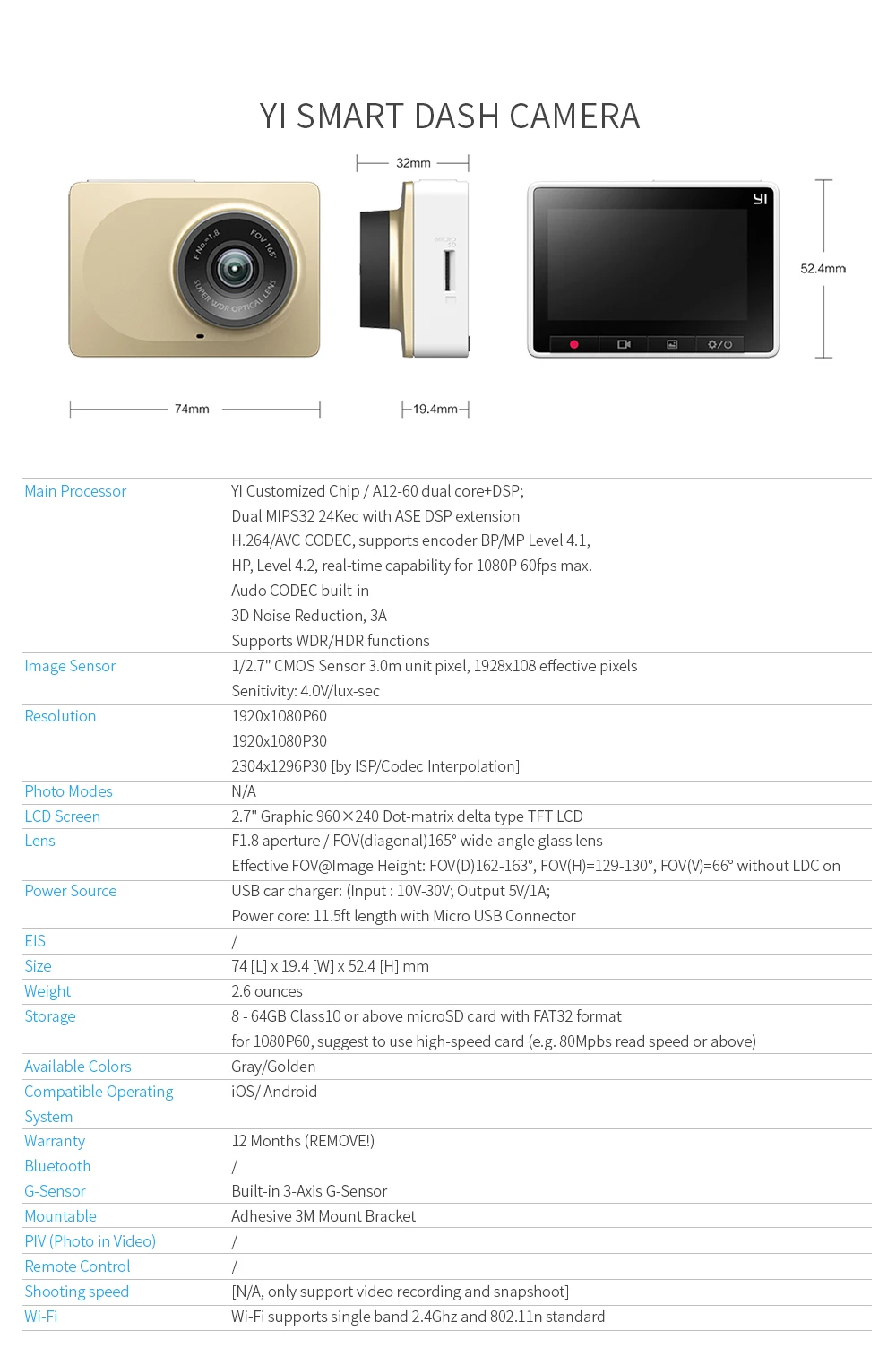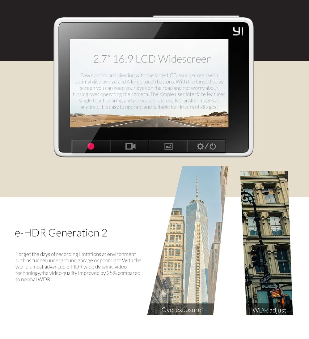 Great Gift YI Dash Camera Full HD 1080P 2.7\" Screen 60fps 165 degree Wide-Angle Car DVR Vehicle Dash Cam with G-Sensor Night Vision ADAS smart camera Rating: 5 out of 5