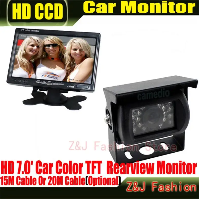 NEW 7" LCD Monitor+18 IR Reverse Camera Car Rear View Kit car camera 15M Or 20 20M cable(Optional)
