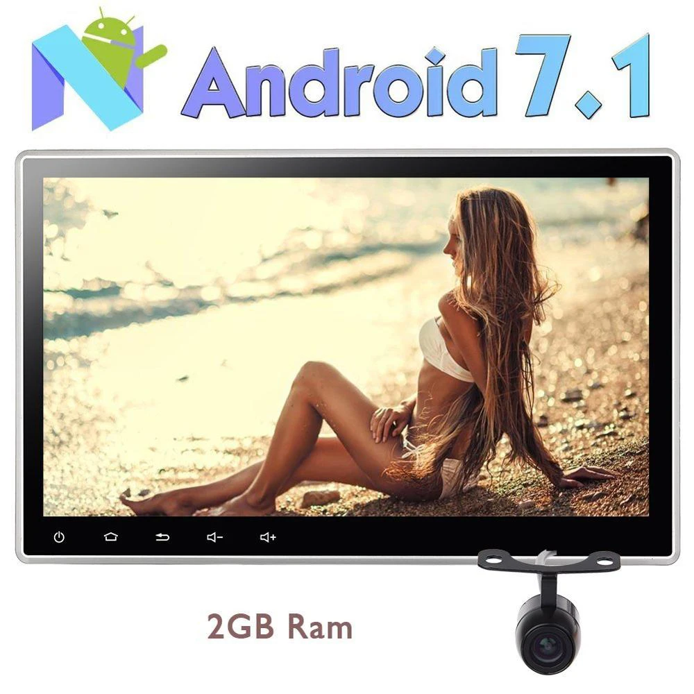 Rear Camera Included!2GB RAM Double 2 Din Car Radio Stereo with Android 7.1 Autoradio 10.1 Inch Adjustable Viewing Angle Support GPS Navigation Bluetooth WIFI 3G 4G OBD2 FM AM RDS Radio USB SD Cam-IN