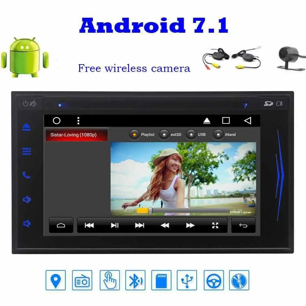 Wireless Camera + Android 7.1 Octa-core Double Din GPS Car Stereo Naviagtion System Capacitive Touch Screen Multi-Language Autoradio Bluetooth WIFI Radio FM/AM RDS Recevier Support 3G/4G USB SD