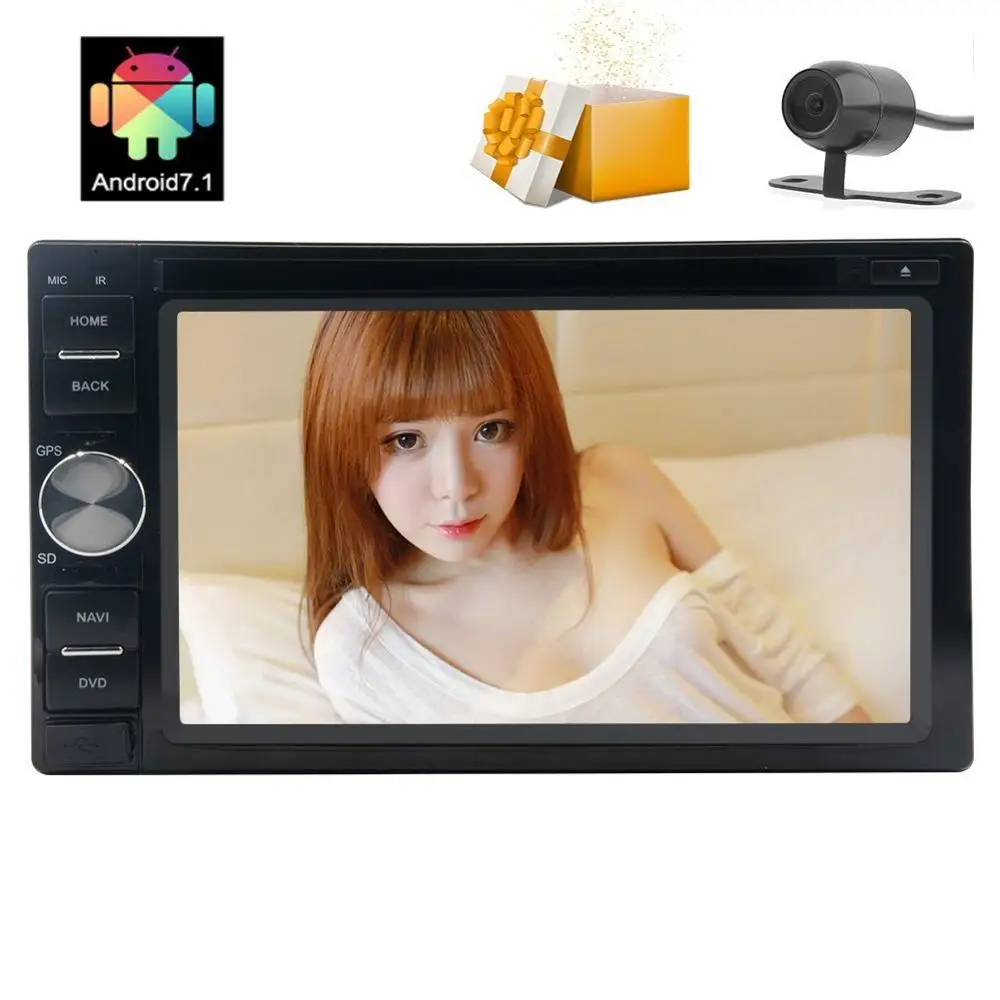 Free Backup Camera + Android 7.1 Car Stereo Car accessories Double Din Head Unit In Dash GPS Navigation Car Autoradio DVD CD Player Support Bluetooth/USB Port and Micro SD Slot/Steering Wheel Control
