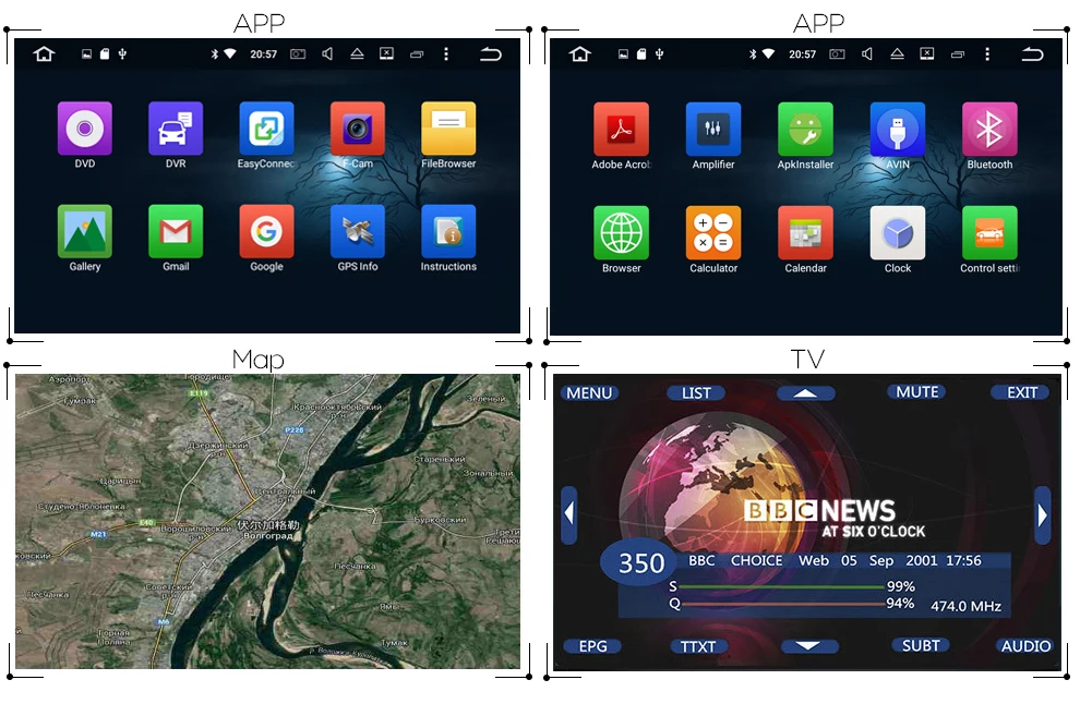 1.Pure Android 6.0.1 or 7.1.2 OS, HD 1024*600 Pixels, Capacitive Screen.2.Super Hardware Performance, Cortex A53 PX5 64-Bit CPU.3.Fast Response, Built in DDR3 4GB RAM, 32GB ROM For 6.01 OS. ( 16GB ROM For 7.1.2 OS ).4.Internet Entertainment, Built-in WiFi Module & Support 4G/3G.5.3D Live Wallpaper & DIY Wallpaper.6.Support DVR/OBD/Front and Rear Camera/Digital TV.7.Support HD 1080P video playing. Support DVD, CD. Support Mirror-link and Airplay. Download More APPs from Android market.