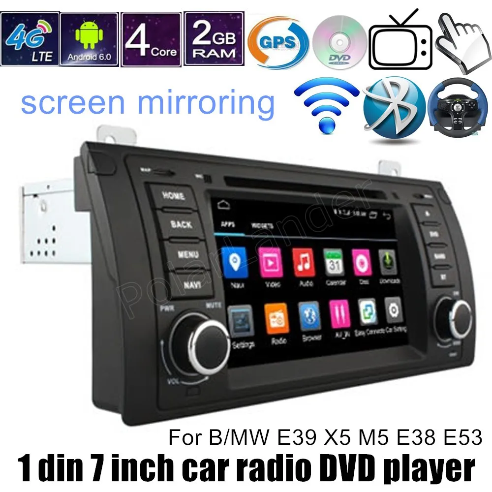 4G SIM LTE Android 6.0 Quad Core 7" 1024*600 In Dash Car DVD Player For B/MW E39 X5 M5 E38 E53 With Wifi GPS Navi Radio FM