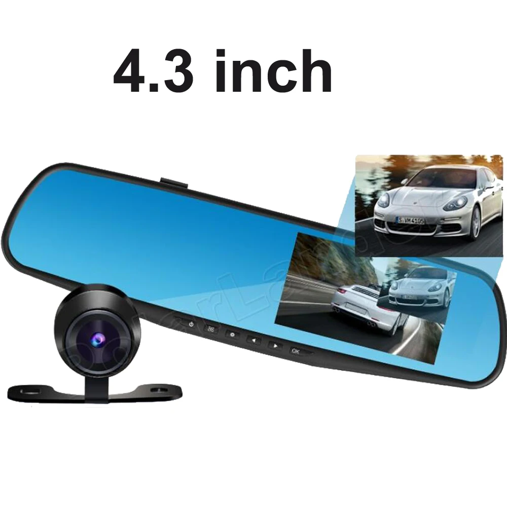 HD Dual Lens Car Camera Video DVR Dash Cam Rearview Mirror Right 4.3 inch LCD Screen Support Night Vision Car Black Box