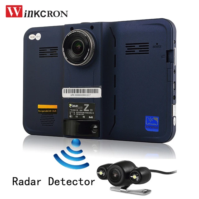 Winkcron New GPS Navigation Android 7" Car DVR Rear view camera Car Radar detector FHD1080P auto camera G-Sensor 16GB free map