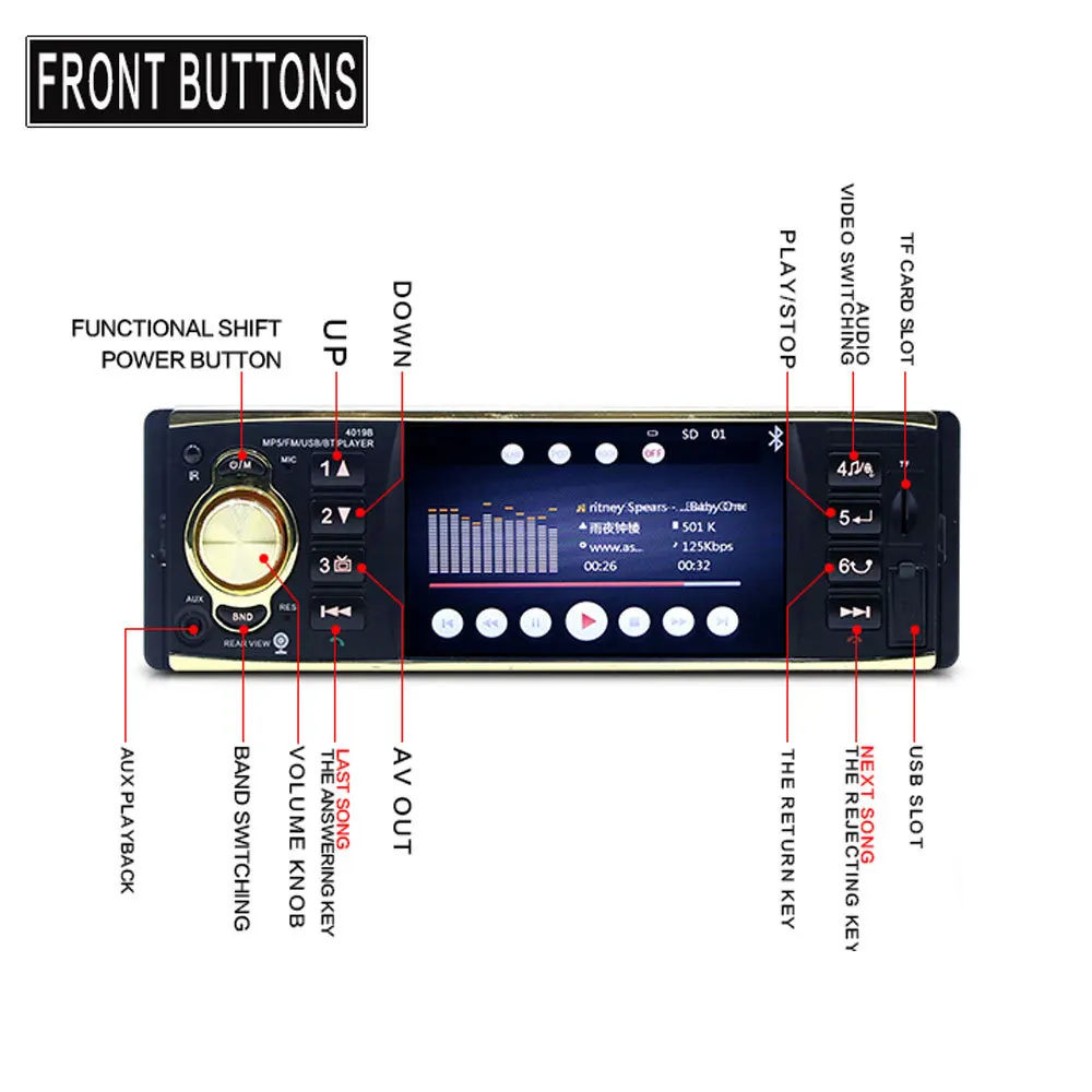 4019B 4.1 inch 1 Din Car Radio Audio Stereo 1Din USB AUX FM Radio Station Bluetooth with Rearview Camera Remote Control