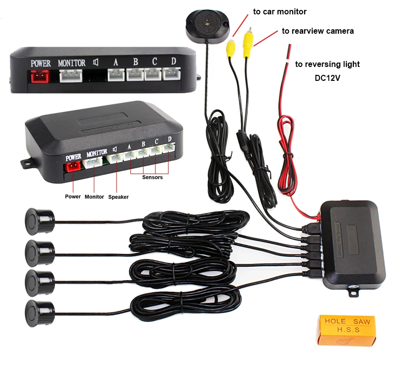 4 Sensors Dual Core Car Rear View Camera Parking Assistance System Sound Alarm. Car Reversing image and distance can show on Car Mirror Monitor.