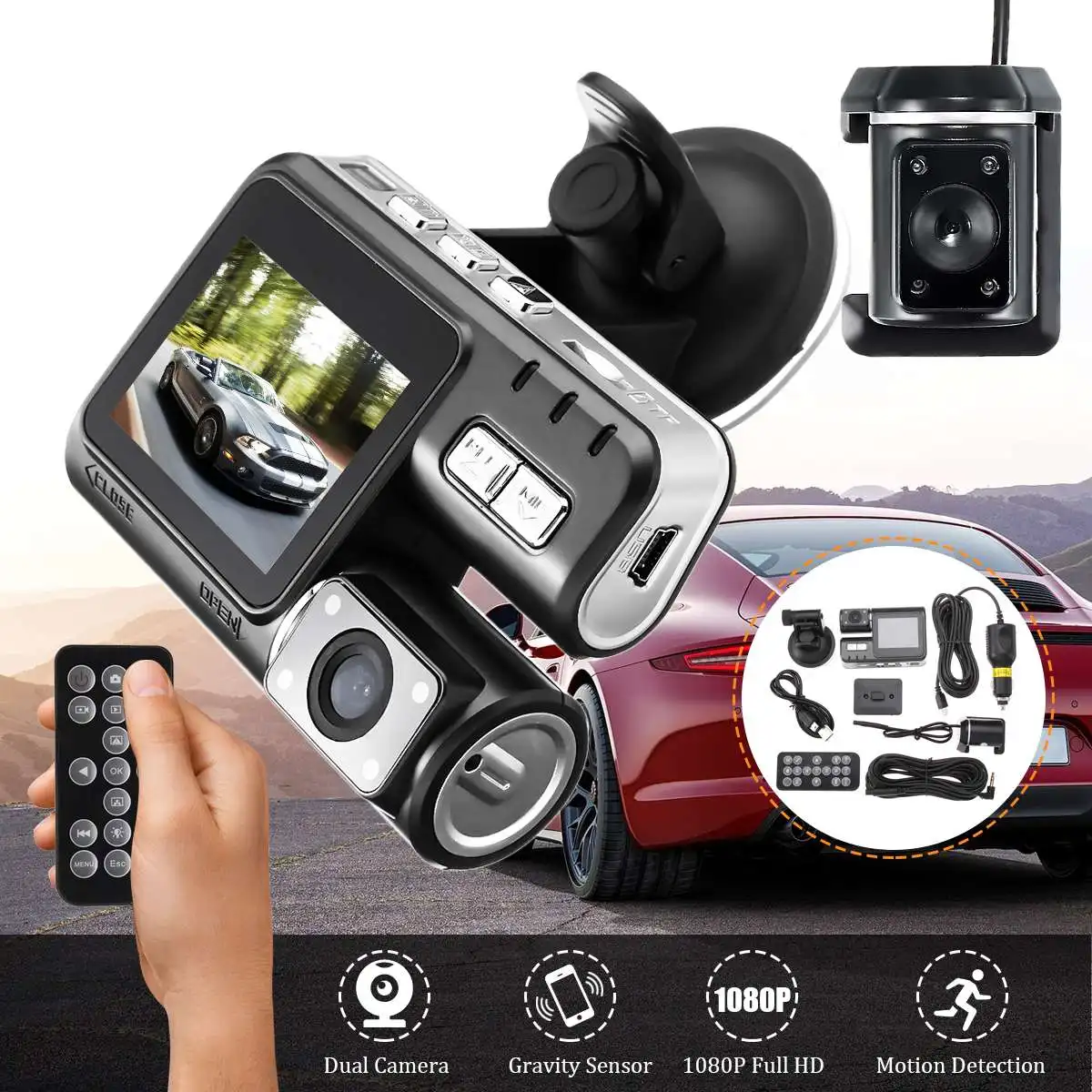 - Motion Detection,Time&Date Display,Cycle Recording,G-sensor,Night Vision,Dual Lens.