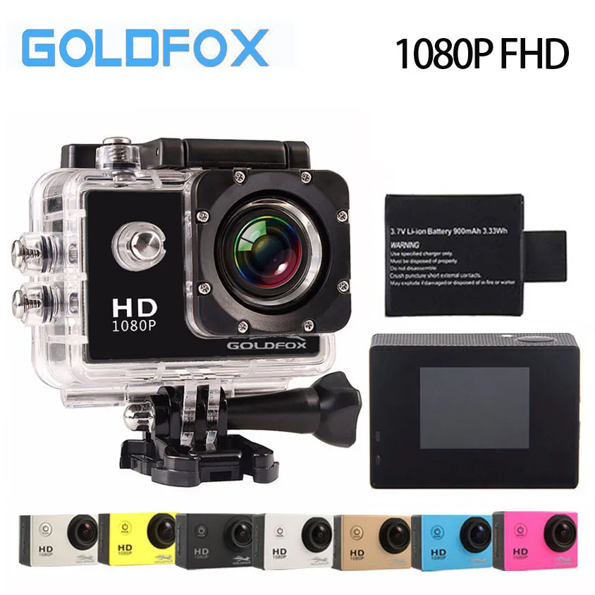 GOLDFOX 12MP 1080P FHD Video Action Camera 30M Go Waterproof Pro Sport DV Bike Helmet Mini Video Camera Car Dvr
