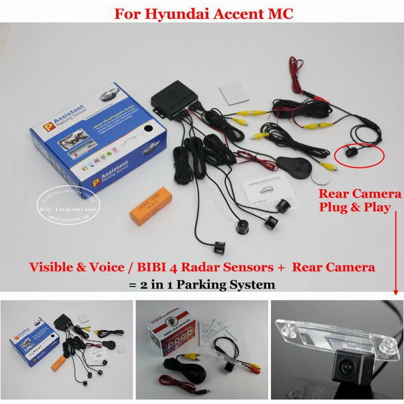 Excellent2 in 1 Visible & Vioce / BIBI Alarm Parking System For Hyundai Accent MC Car 2005~2011 Parking Radar Sensors + Rear View Camera