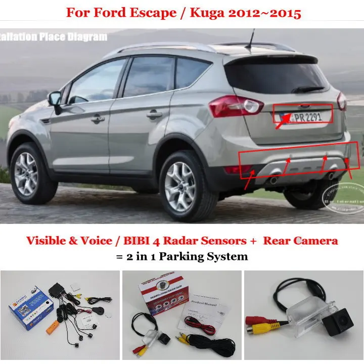 2 in 1 Visible & Vioce / BIBI Alarm Parking System For Ford Escape / Kuga 2012~2015 Car Parking Radar Sensors + Rear View Camera