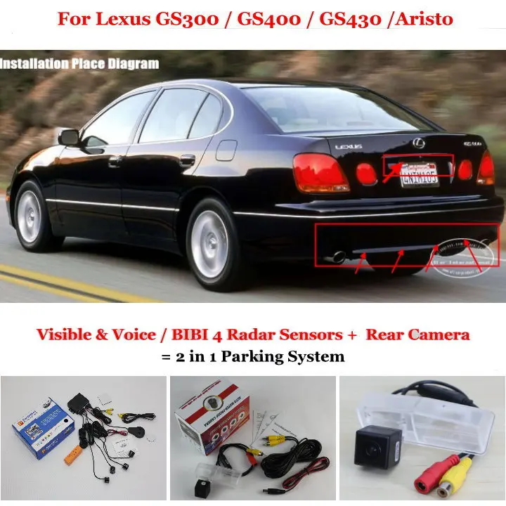 2 in 1 Visible & Vioce / BIBI Alarm Parking System For Lexus GS300 / GS400 / GS430 / Aristo Car Parking Radar Sensors + Rear View Camera it detects the distance between the car and the back obstruction with ultrasonic sensors,it shows the far and near distances in the display, the obstruction image will be shown via the rear camera. coming with the alarm sounds (English Voice or BIBI sounds), detecting the safe area correctly.