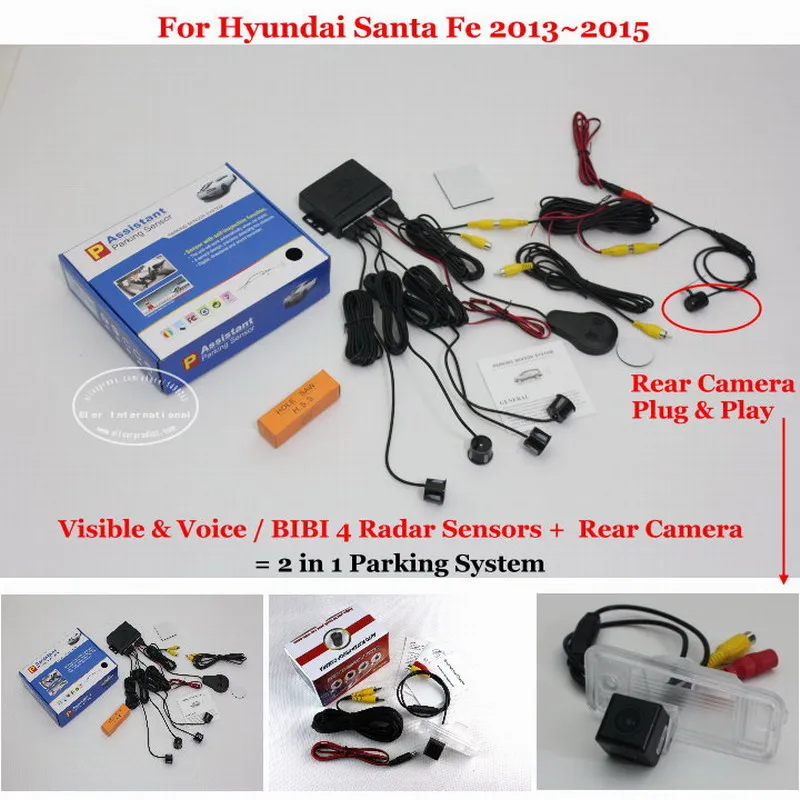 No comment2 in 1 Visible & Vioce / BIBI Alarm Parking System For Hyundai Santa Fe 2013~2015 Car Parking Radar Sensors + Rear View Camerait detects the distance between the car and the back obstruction with ultrasonic sensors,it shows the far and near distances in the display, the obstruction image will be shown via the rear camera. coming with the alarm sounds (English Voice or BIBI sounds), detecting the safe area correctly.