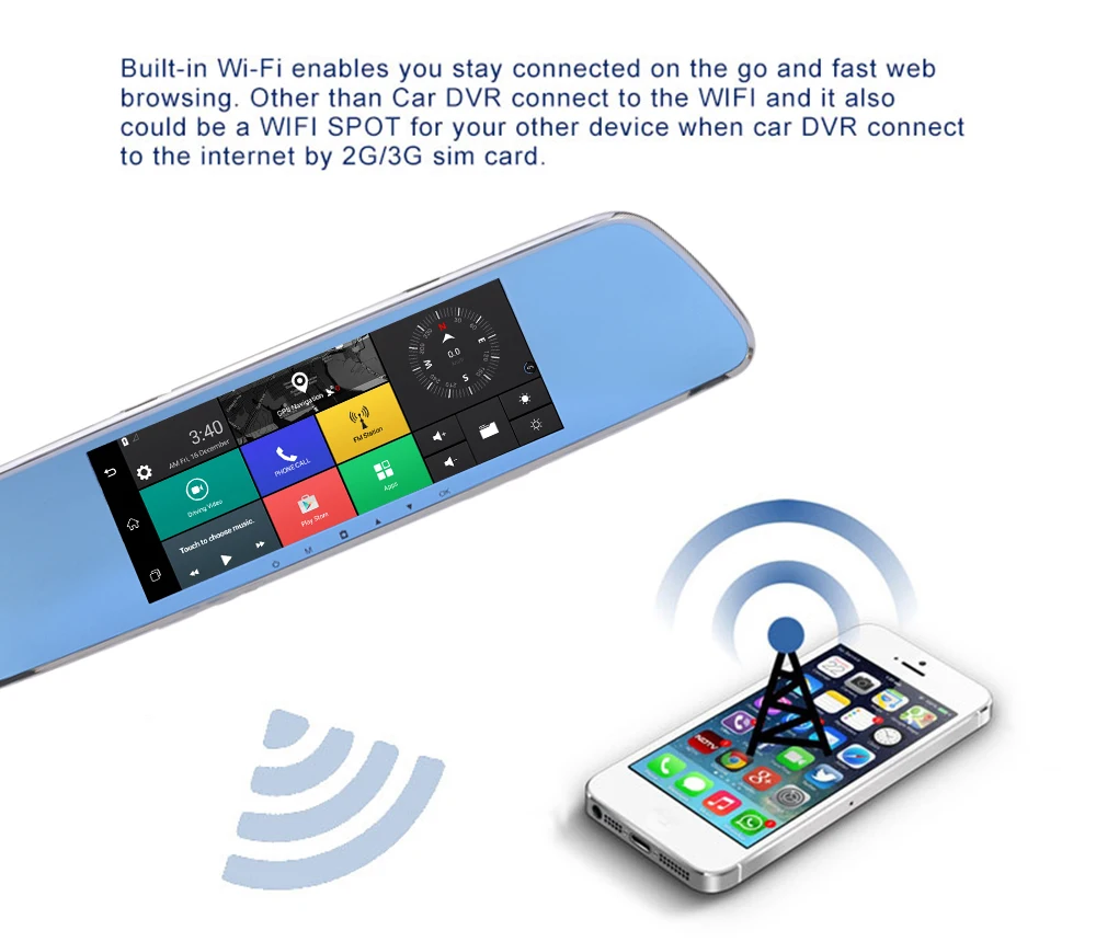 Thanks to bluetooth hands-free, after pairing the bluetooth between dvr and smartphone,you could make and receive calls directly from the mirror dvr itself with the built-in MIC and speaker.