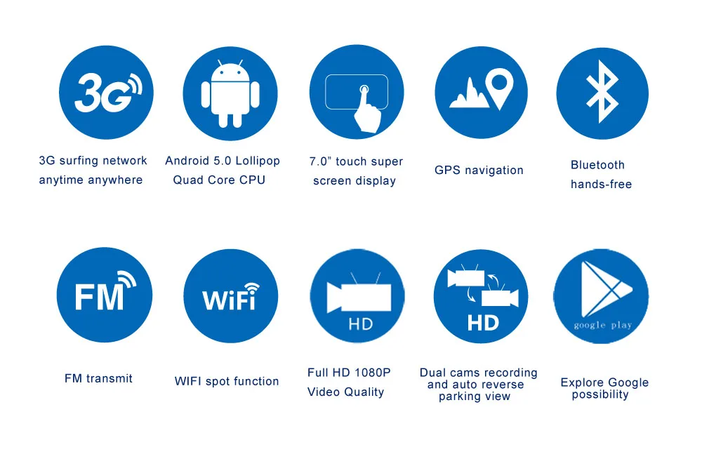 The MT6582 Quad core 1.3GHZ high performance processor incorporates Android 5.0 lollipop smart systems,it make the car dvr runs more quickly, smoothly and stablely compare to Andorid 4.4.