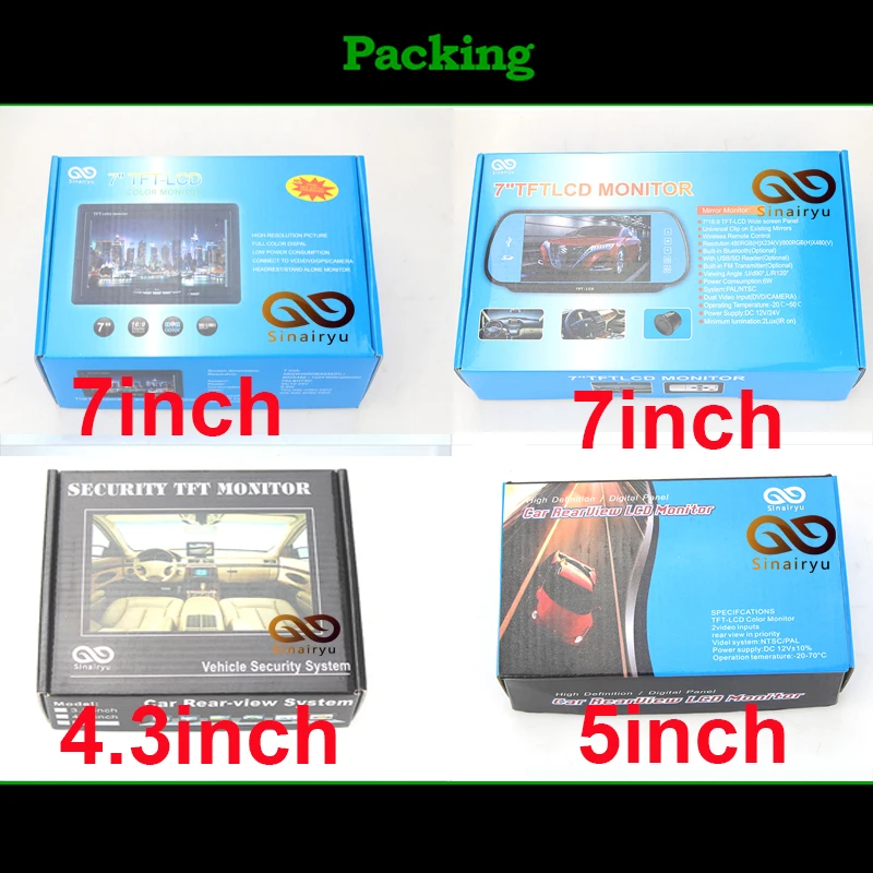 1 x 4.3inch Car Mirror Monitor. 1 x rear view camera with sensor.