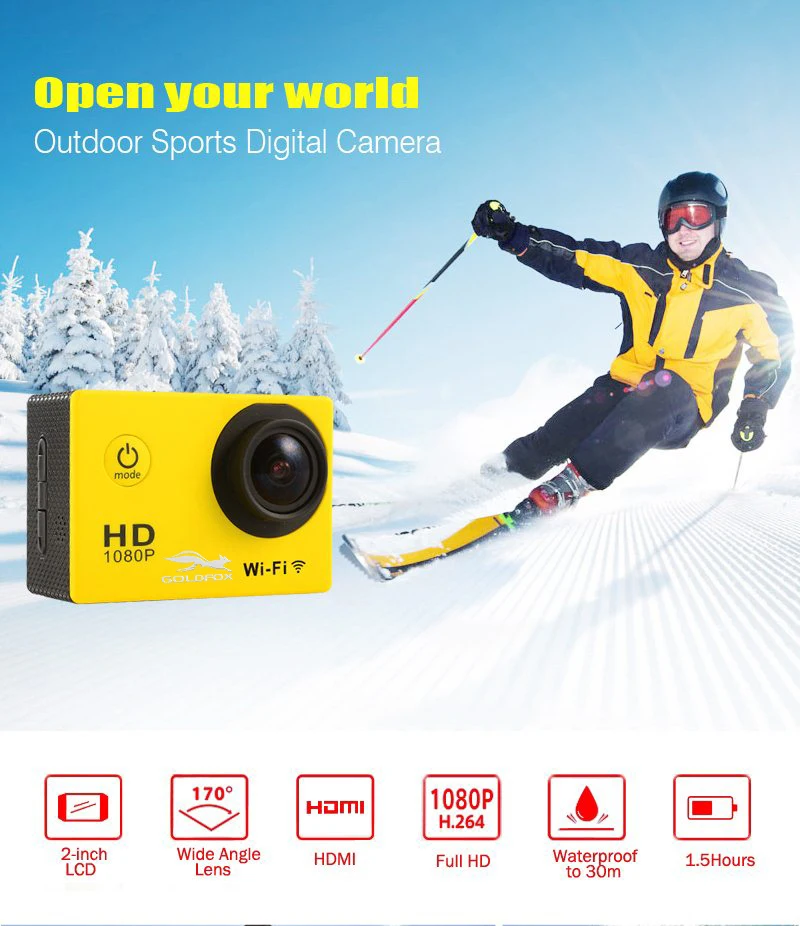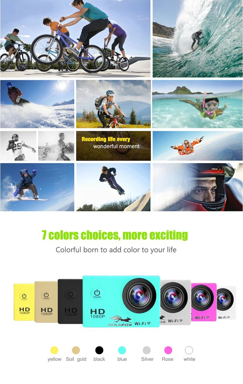 GOLDFOX 1080P Full HD Action Camera 12MP 30M Diving Go Waterproof Pro Hero 3 Style Sport Dv Bike Helmet Cam Camera