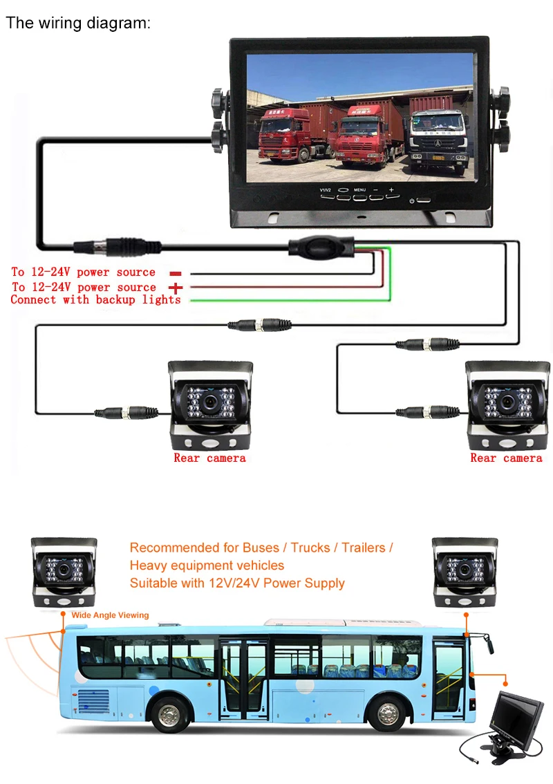 On-time Delivery: If you do not receive your purchase within 60 days, you can ask for a full refund before order completion (when you click "Confirm Order Received" or exceed confirmation timeframe).Cool Discount Sinairyu Large Vehicle Conmpact 7 Inch TFT LCD Monitor + 2PCS Metal Shell IR Rear View Camera Waterproof Night Vision
