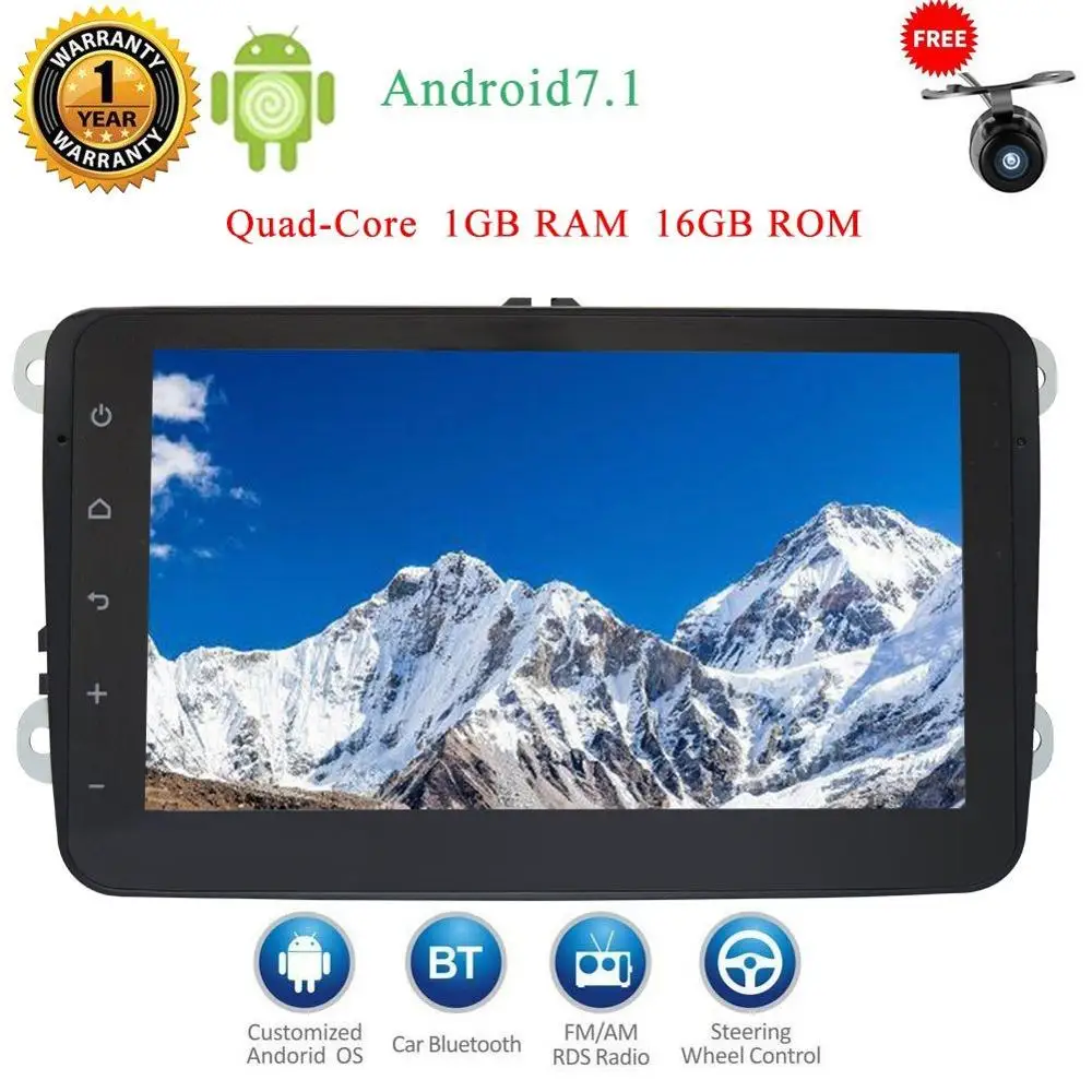 - * 1.Android 7.1 OS; 8 inch Screen Resolution 1024*600;Car Camera for a free gift; SD/USB Support, subwoofer output.Capacitive Touch Screen, Games, Steering Wheel Control, 3D Interface, RDS,GPS, Built-in Bluetooth