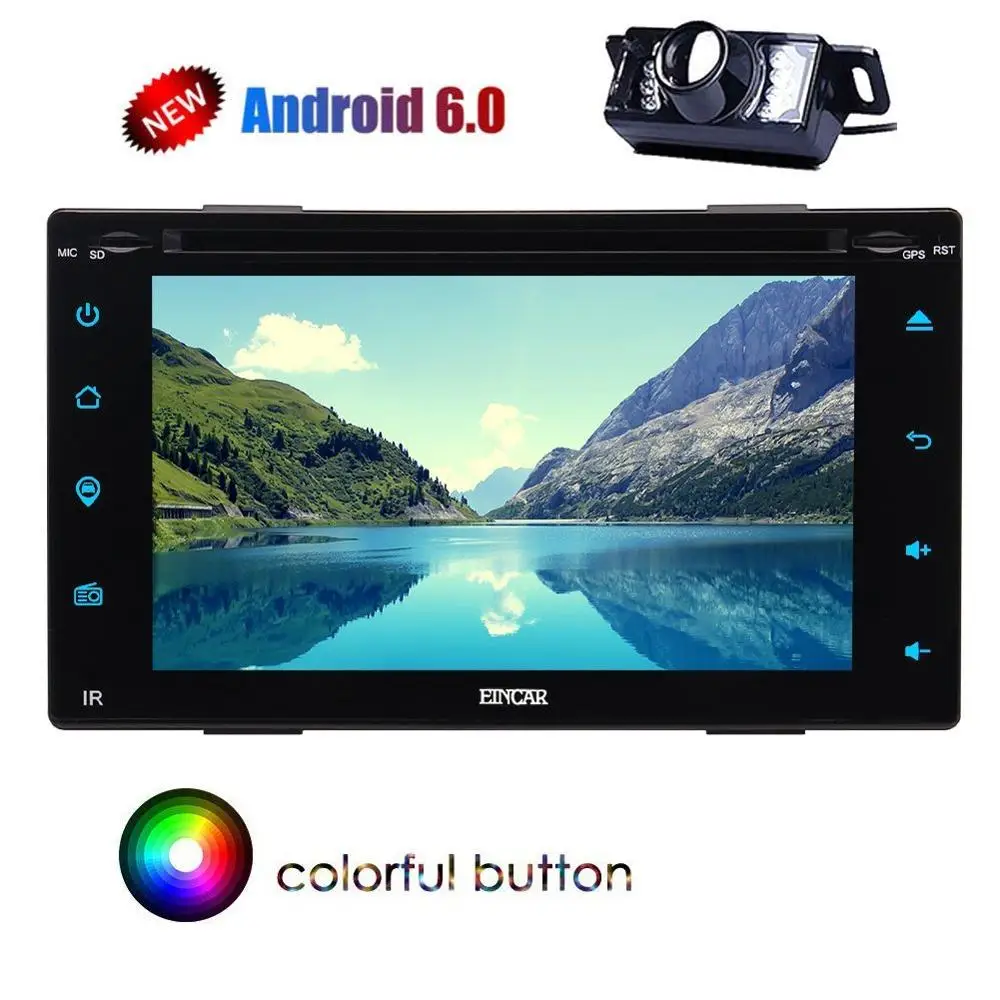 Rearview Camera include Android Car DVD Player with Quad-core 6.0 OS Stereo system In Dash HD 1024*600 6.2inch Screen Radio Stereo with GPS Navigation Bluetooth Wifi USB/SD FM AM RDS Radio Receiver Remote Control Multimedia HeadUnit