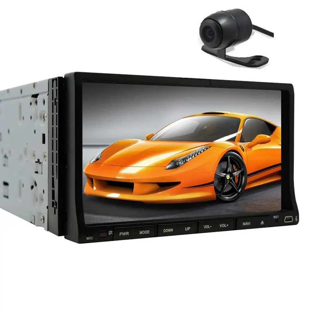 Free Rear View Camera+ GPS Car DVD Player Digital Touch Screen 2 Din Car Stereo Navigation Double Din In Dash FM AM Radio CD Player 7 Digital Screen Headunit Supports Bluetooth iPod USB SD Slot 8GB GPS Map card