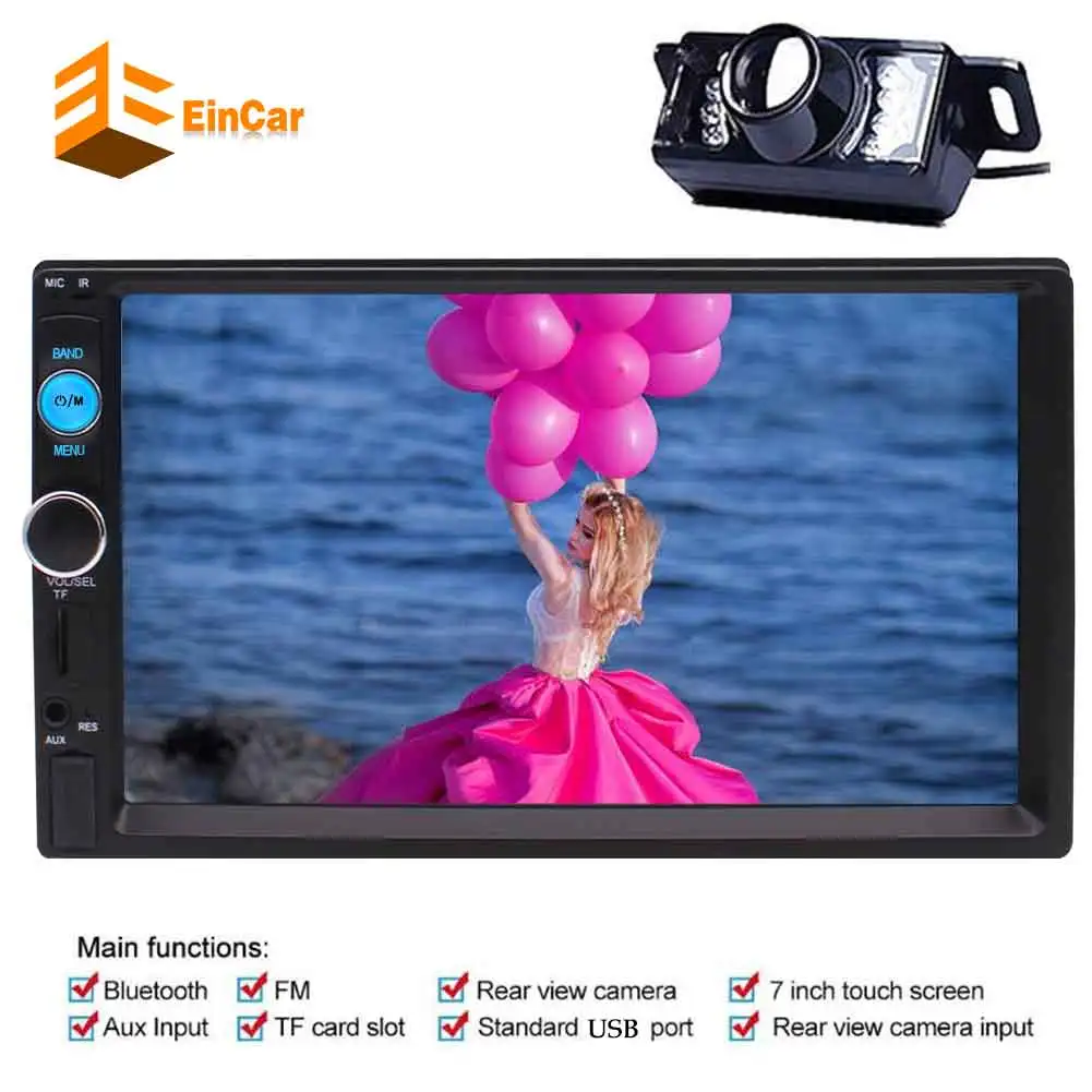 --Main function: Support playing high-definition movies/FM Radio/SD/USB/Aux Audio Input/Built-in Bluetooth + Microphone/Hands-free Calls/Rear View Camera Input(CAMERA IS INCLUDED)/Wireless Remote Control.