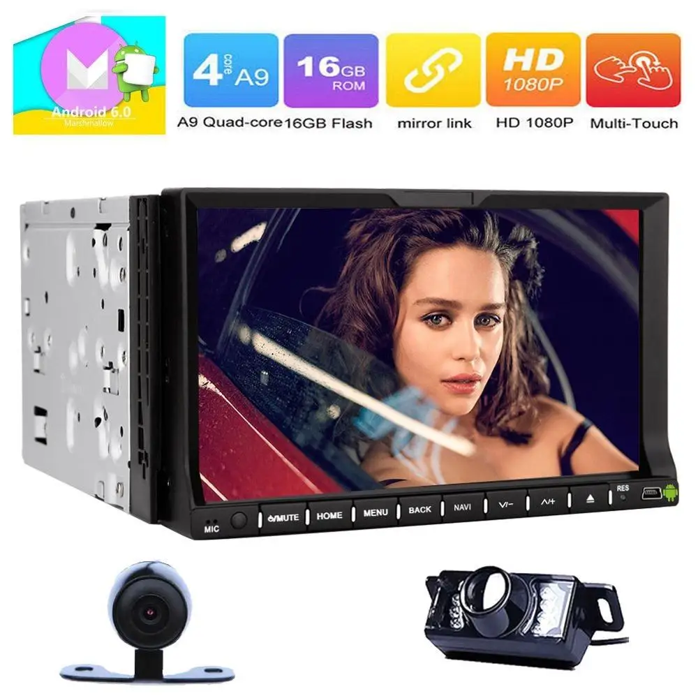 Front and Back Camera Included!Androud 6.0 Car Radio Stereo GPS Navigation Car DVD CD Player Double 2 Din Head Unit In Dash With Quad-Core Support Mirror link Bluetooth WIFI OBD 3G/4G USB SD SWC Radio FM/AM RDS