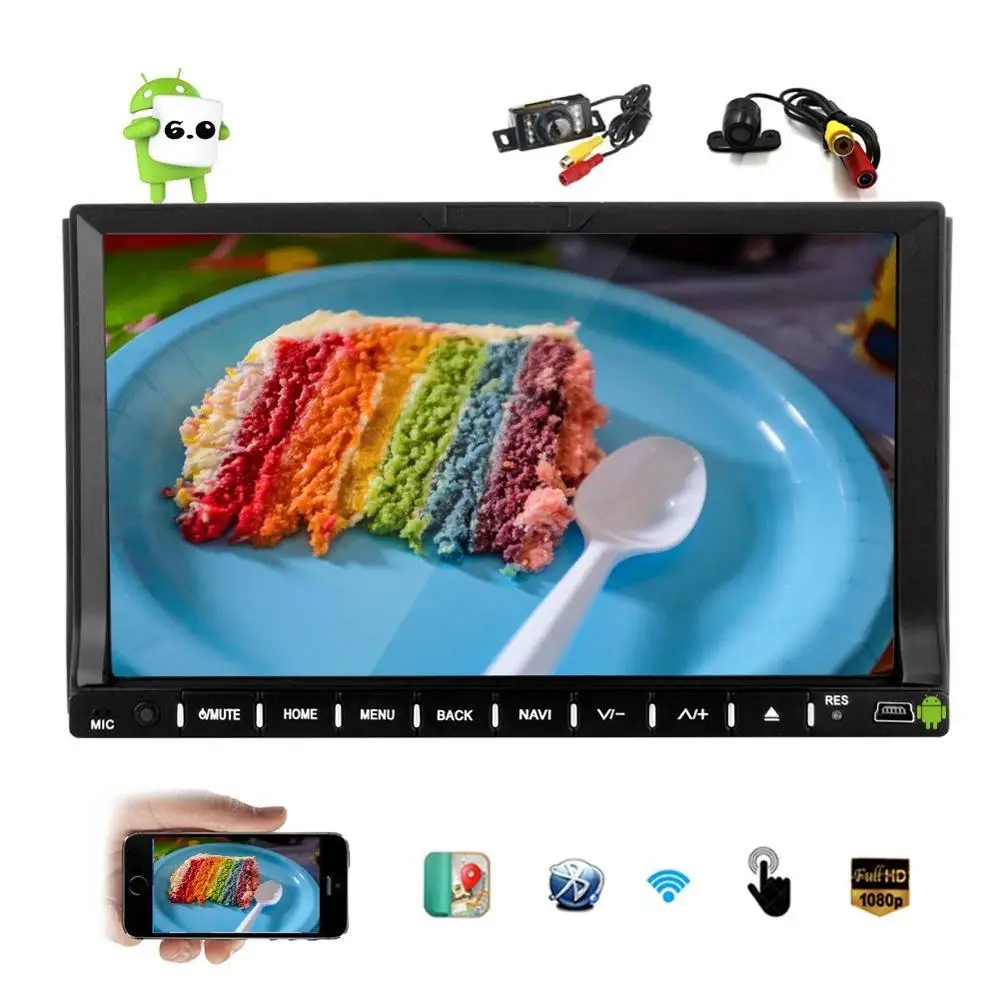 Front & Backup Camera included! Quad Core Android 6.0 Car DVD Player Double Din Car Stereo with 7 inch Capacitive Touchscreen GPS Navigation In Dash Bluetooth WiFi Mirrorlink AM FM Radio Audio System